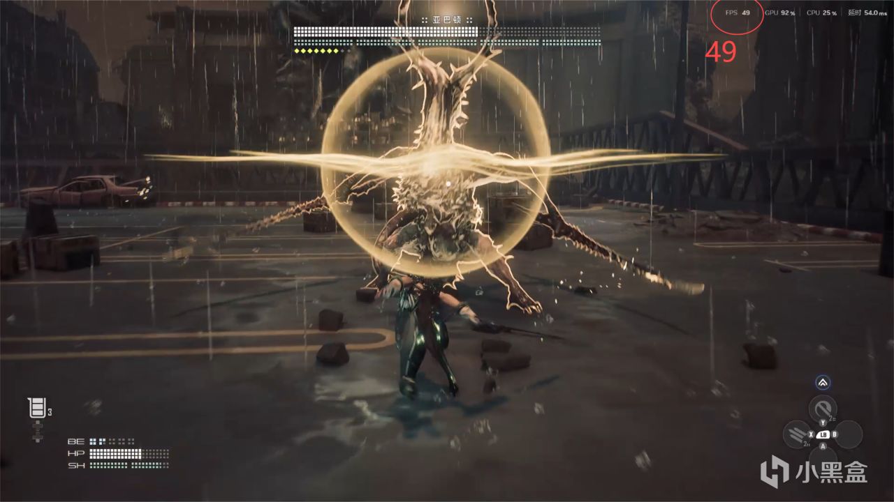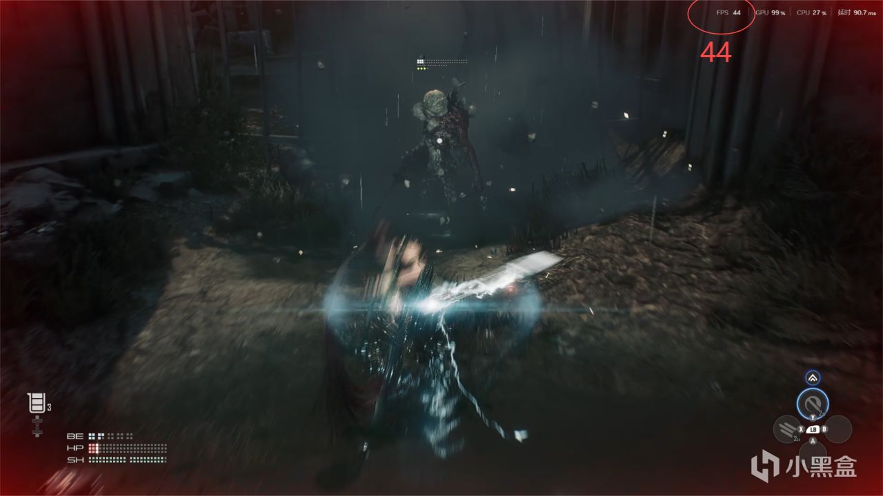 第一個試玩版BOSS因爲在雨天的渲染下,會比較喫配置一點點,大致在46-50幀左右徘徊!