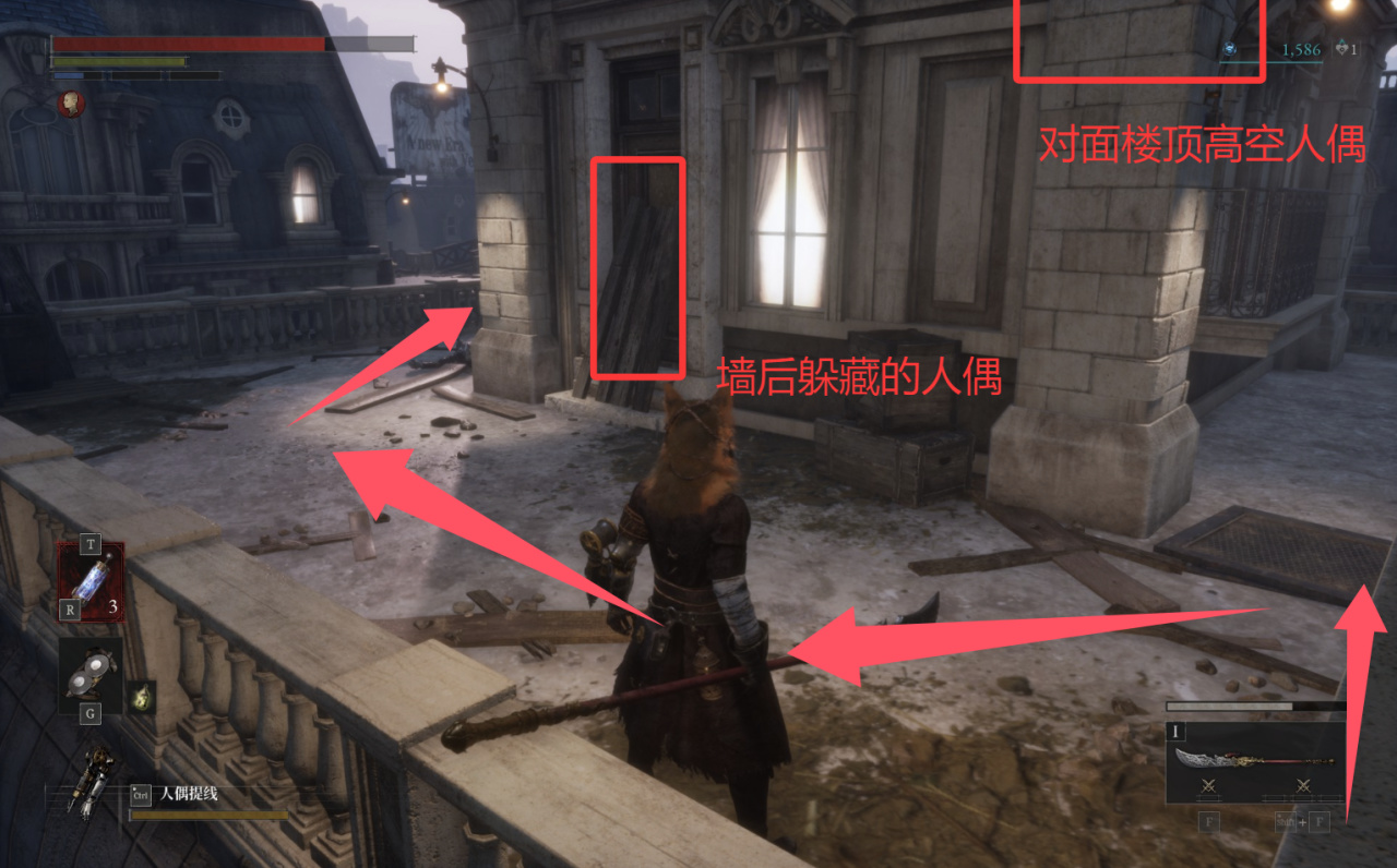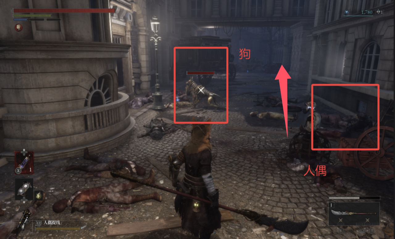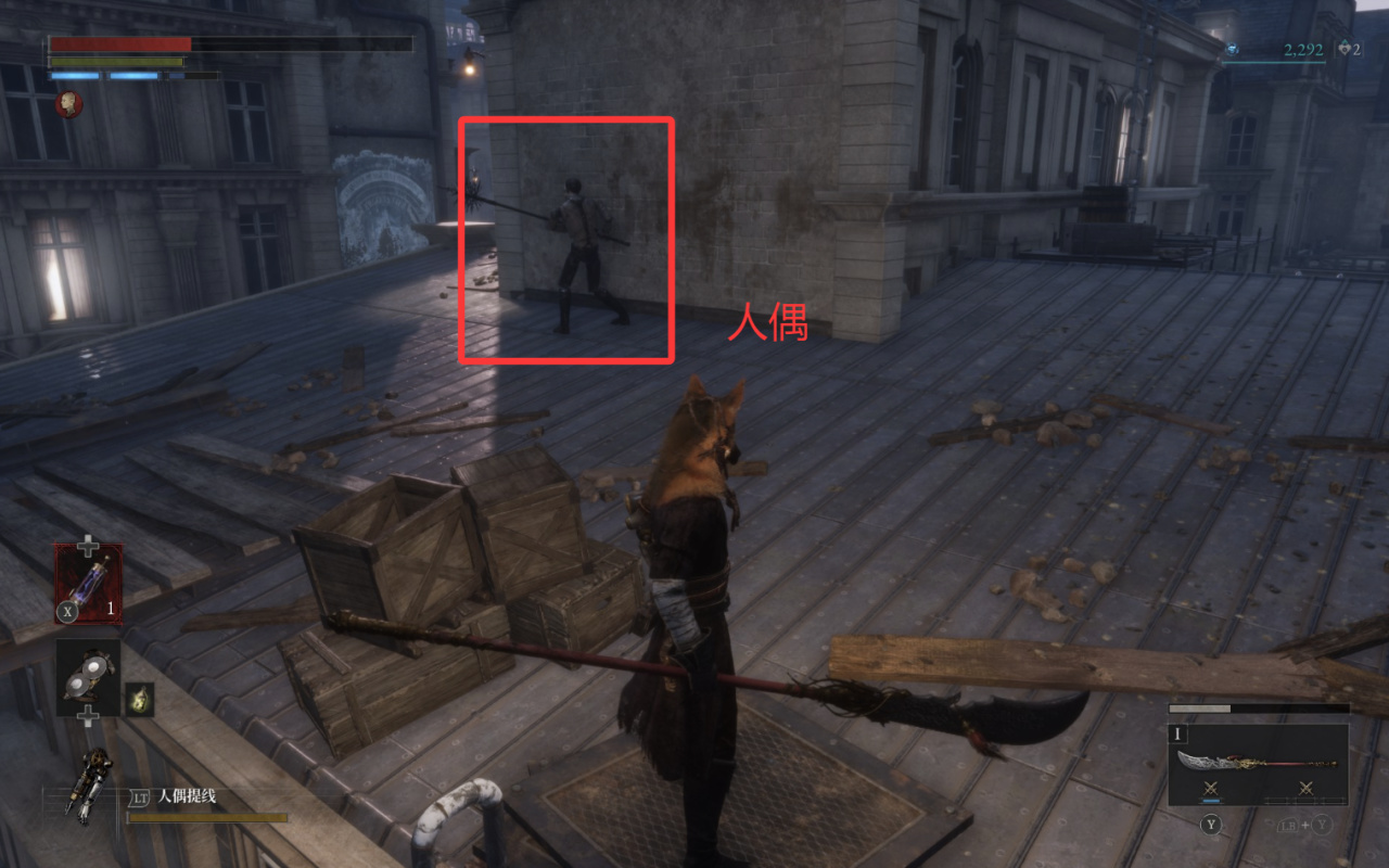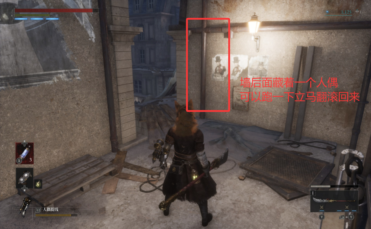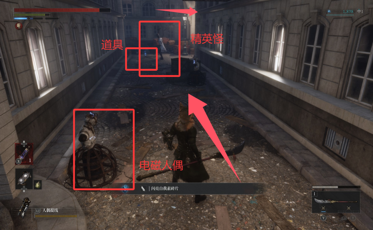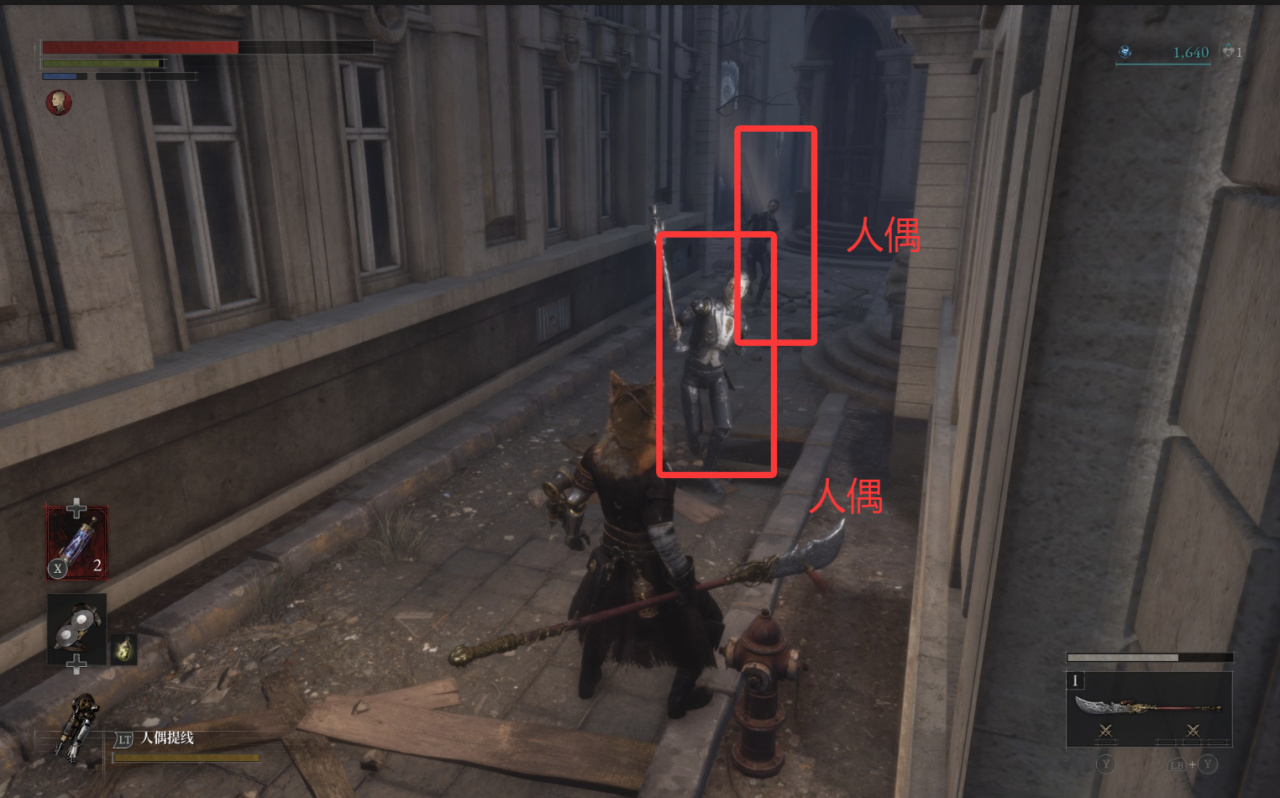 來到主線路口之後,正前方有一個略微強一些的敵人,該敵人可以被人偶提線所拉扯,不建議大家站在我這個位置進行戰鬥