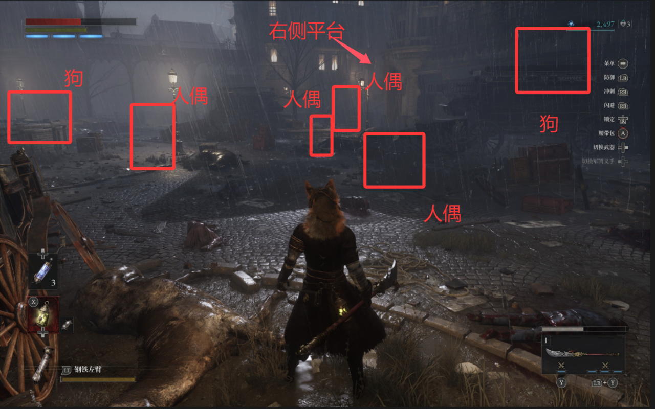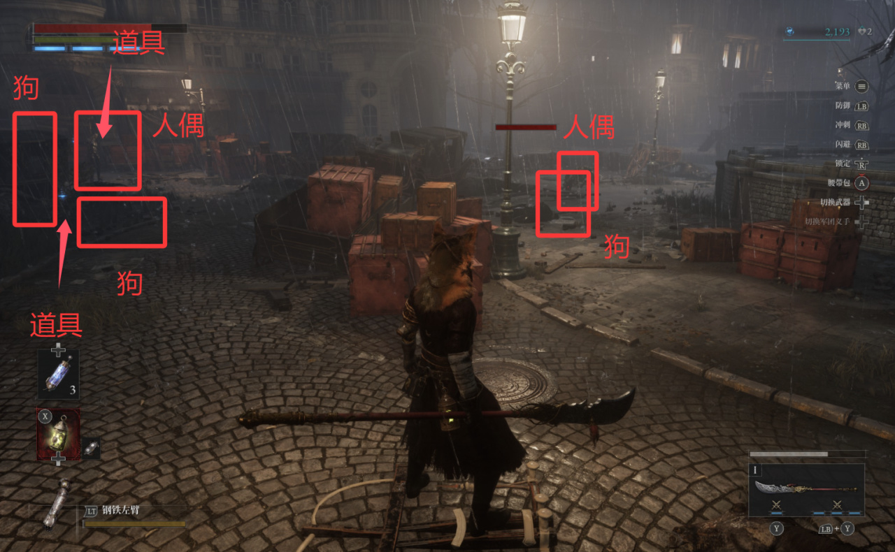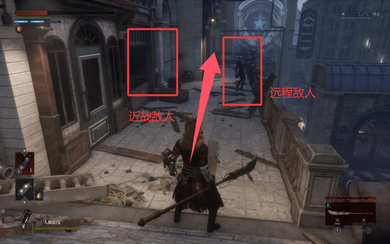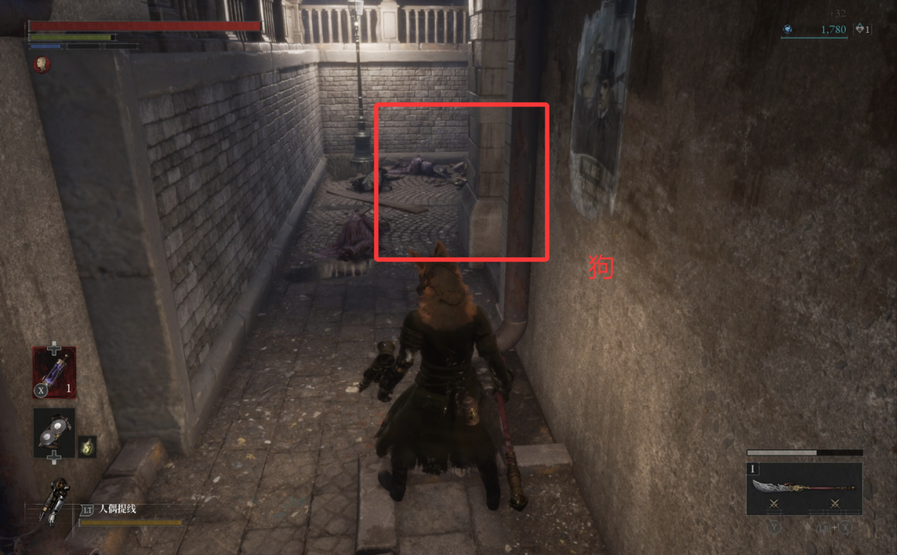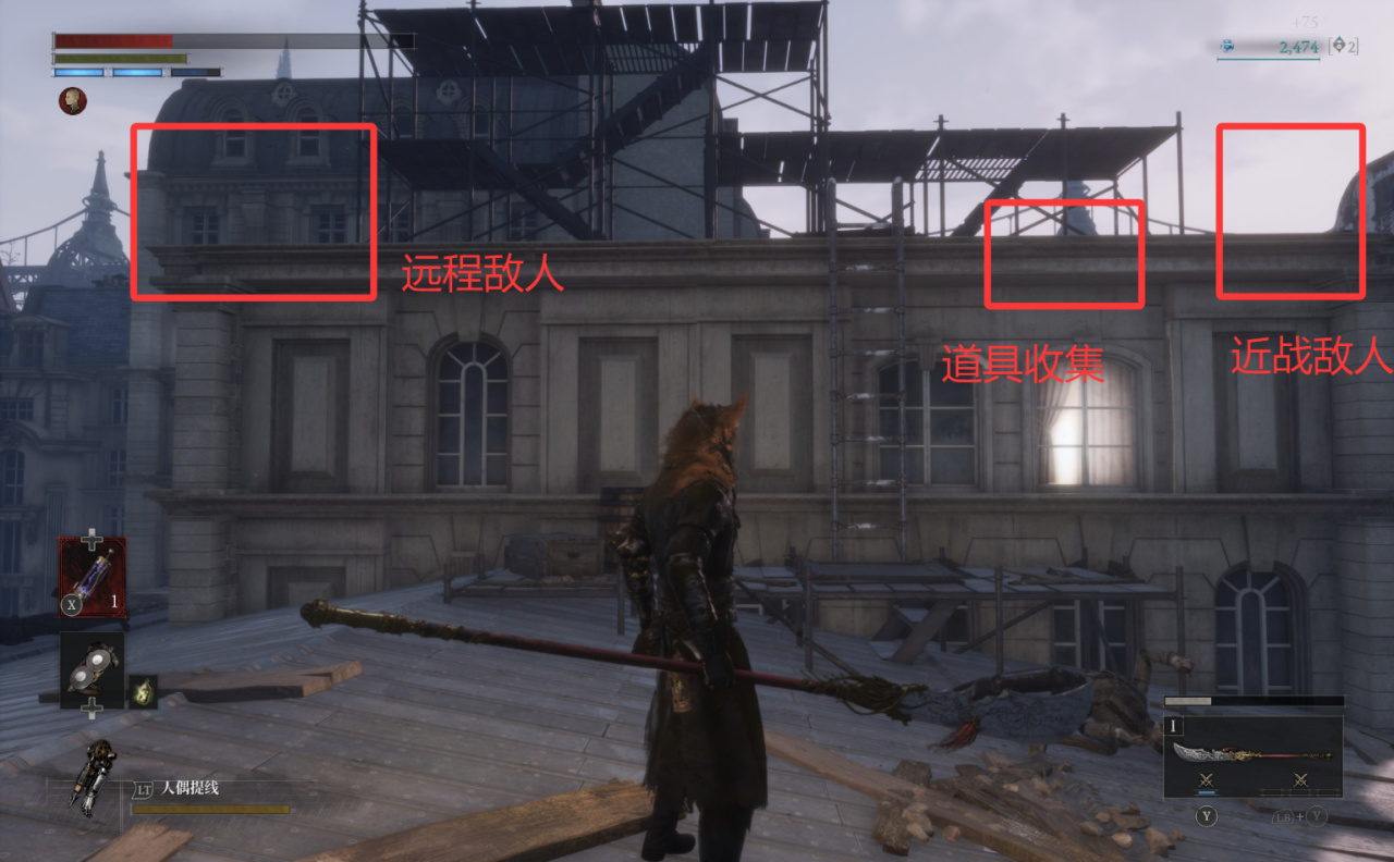來到主線路口之後,正前方有一個略微強一些的敵人,該敵人可以被人偶提線所拉扯,不建議大家站在我這個位置進行戰鬥