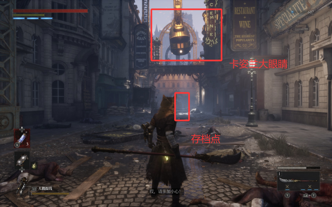 從主線劇情門通過之後一路來到大道,注意一下這裏的光照從側面走過去即可,正前方是下一個存檔點