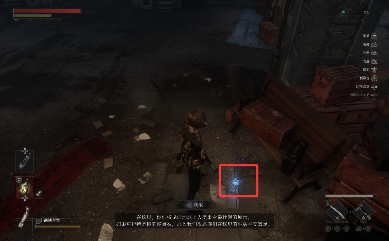 擊敗BOSS之後一路向前將會來到如圖所示的地方,從現在開始前面的路上是不會存在敵人的,如圖所示的地方將會有兩個道具可以手機
