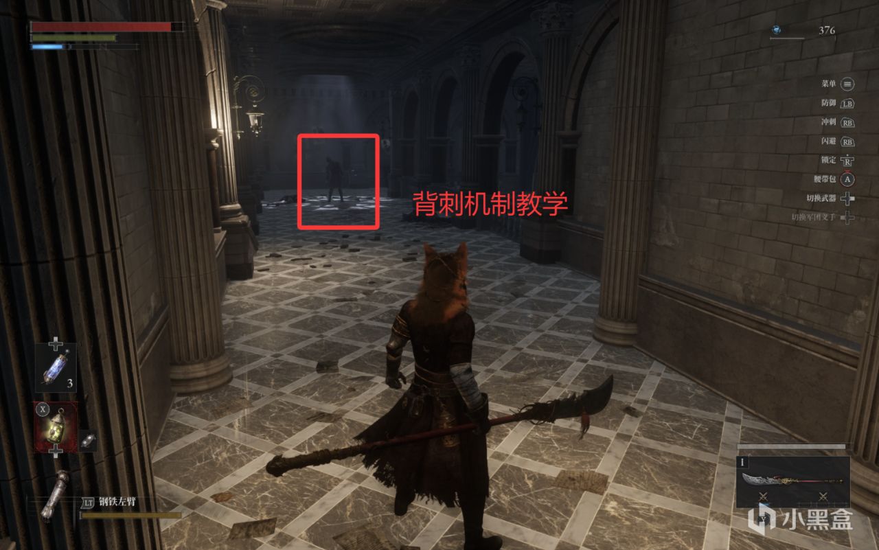 拿完道具之後原路返回上二樓,沿着道路一路前進即可見到如圖所示敵人,該敵人是背刺教學可放心大膽的上去Gank它,擊殺之後右轉直行