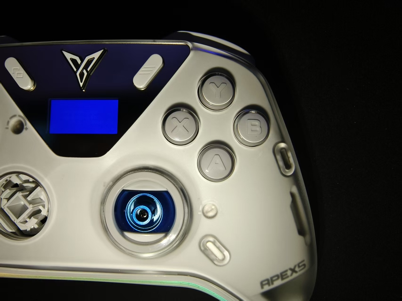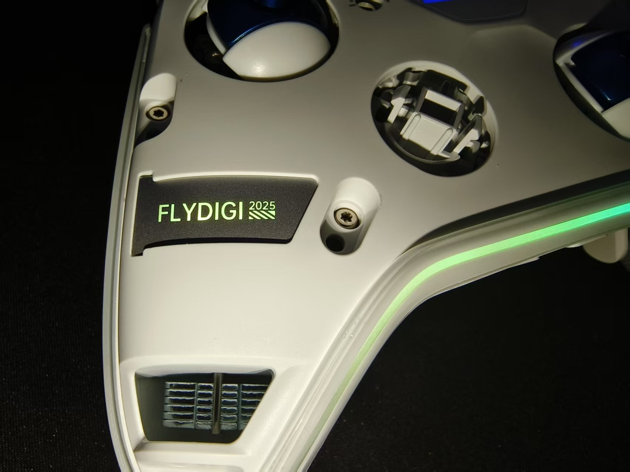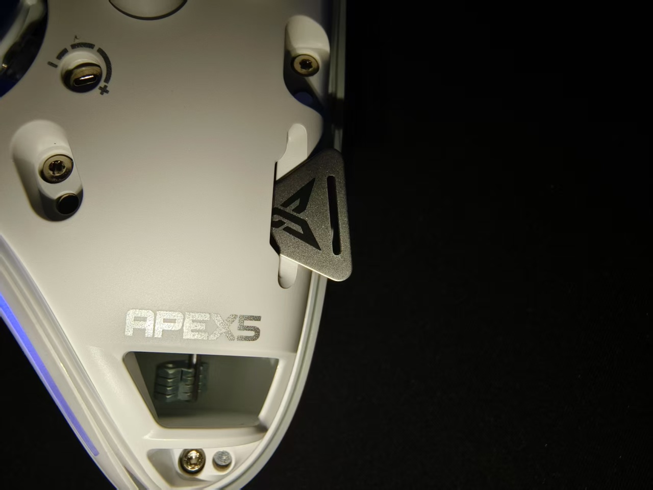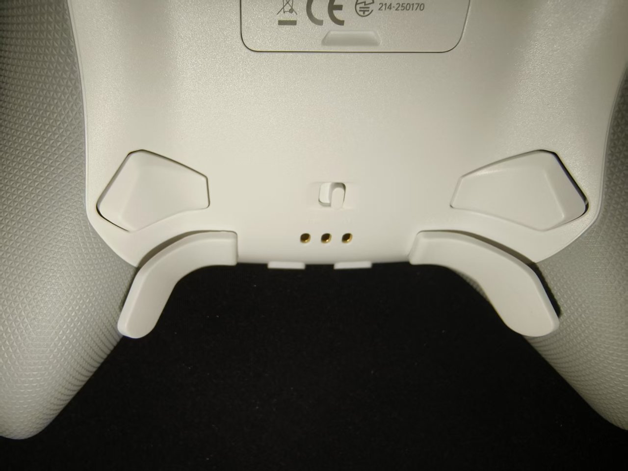 我們先來看外觀,八爪魚4和八爪魚5的外觀乍一看沒有什麼太大的變化,但是在細節方面做了很多優化,八爪魚五5在手柄的底部增加了一根rgb燈帶,燈帶有多種燈效可以選擇,並且支持燈效呼吸;背部的一字型背鍵也升級成了兩顆固定背鍵以及兩顆可拆卸撥片背鍵,這種設計既不影響四顆背鍵分別使用,也能夠顧及到對撥片背鍵容易誤觸的玩家,並且此次兩顆固定背鍵還做了貼合手型的自然弧度處理,因此手指搭上去更加自然舒適。