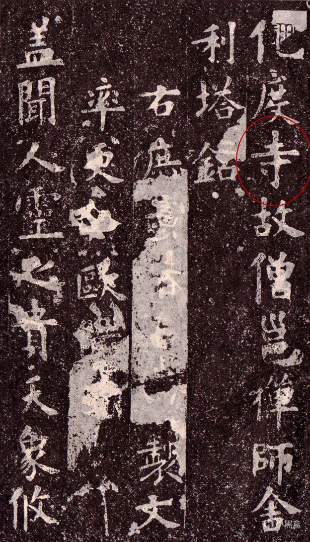 臥虎寺的“寺”字,出自《化度寺碑》, 鐫於唐貞觀五年(公元六三一年),李百藥撰文,歐陽詢楷書,共三十五行,每行三十三字。