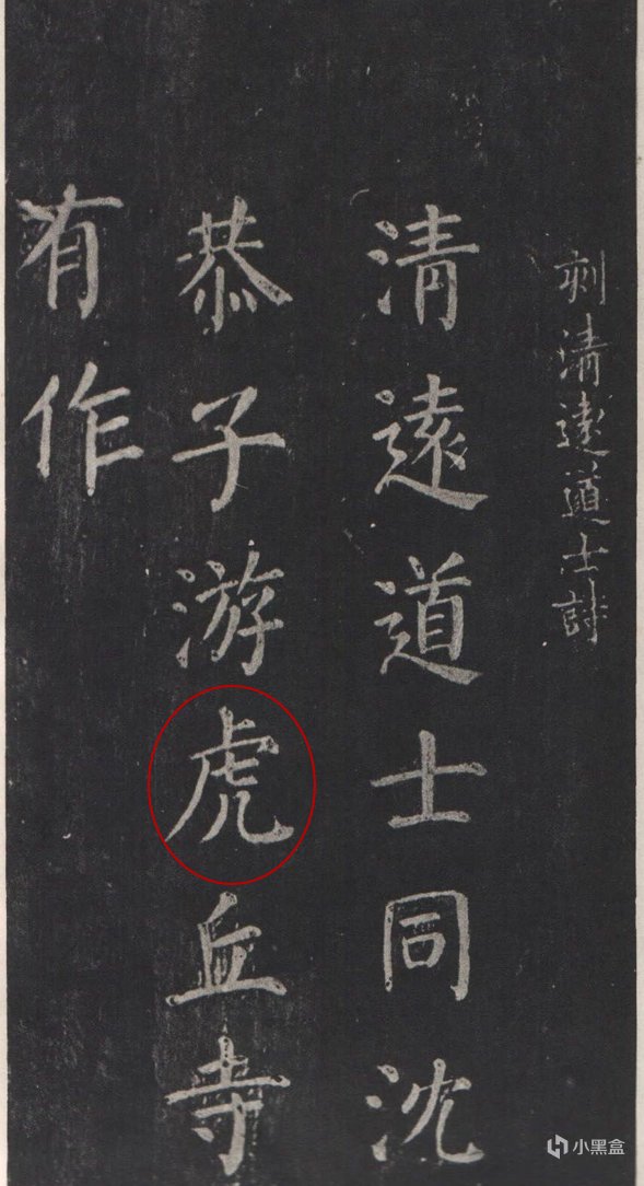 三個字沒有全部使用歐體,是因爲當時“虎”字應避諱唐高祖李淵爺爺李虎的名諱,當時歐陽詢壓根沒有寫過“虎”字,故特別選用了顏真卿的《清遠道士詩》進行集字。所以“虎先鋒”三字成了顏歐合體。
