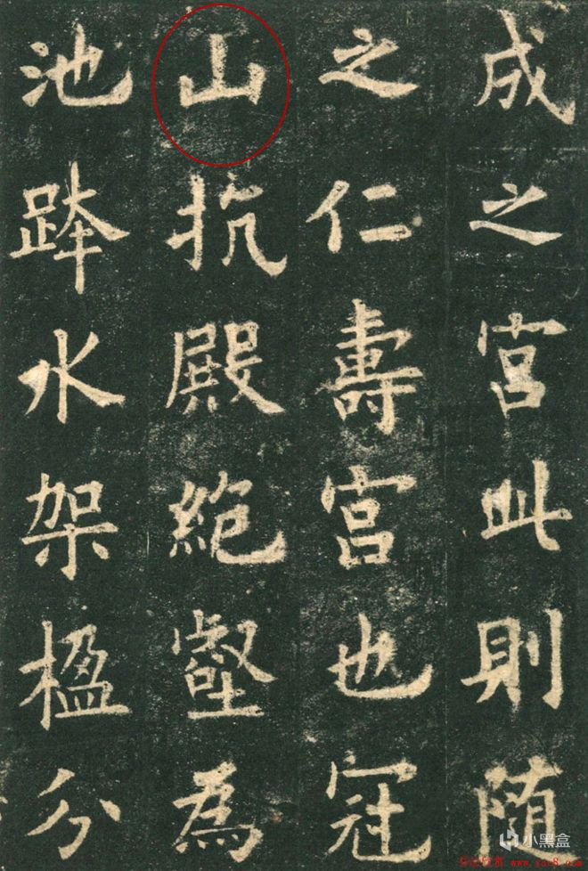 ”石“字來源於歐陽詢的《九成宮醴泉銘》。