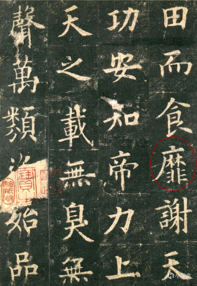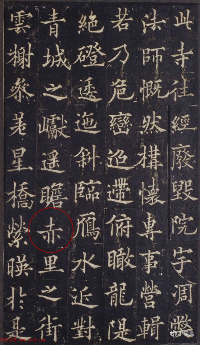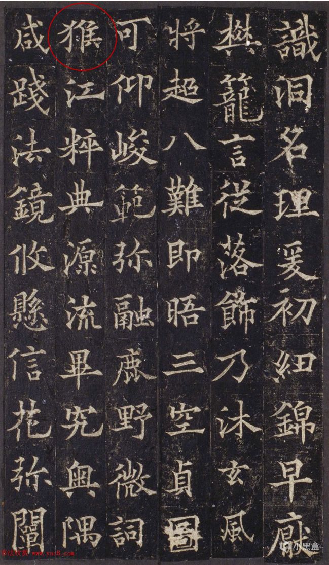 “赤”“猴”二字來源於歐陽詢之子歐陽通楷書《道因法師碑》,34行,行73字,橫列正書7字。