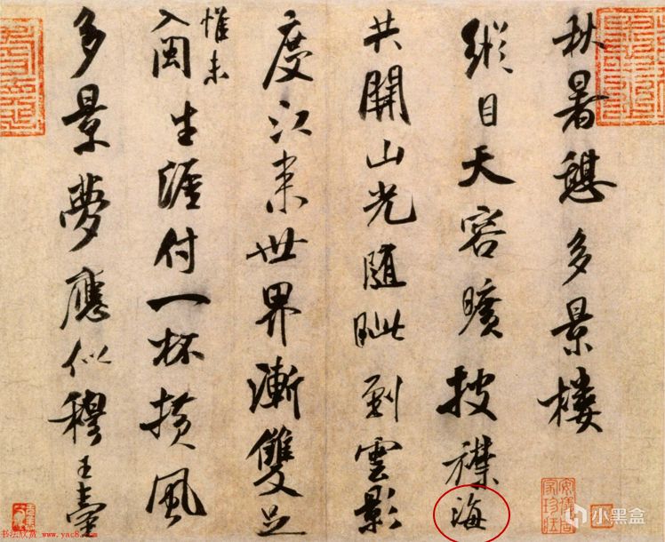 "海"字出自米芾行書《多景樓詩帖》,共書四十一行。
