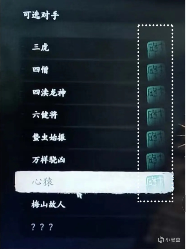 在《黑神話:悟空》的 BOSS 名錄裏,與初版簡單的紅色打底加字相比,每個妖王名諱側上方總端坐着一方小篆硃紅印章。
