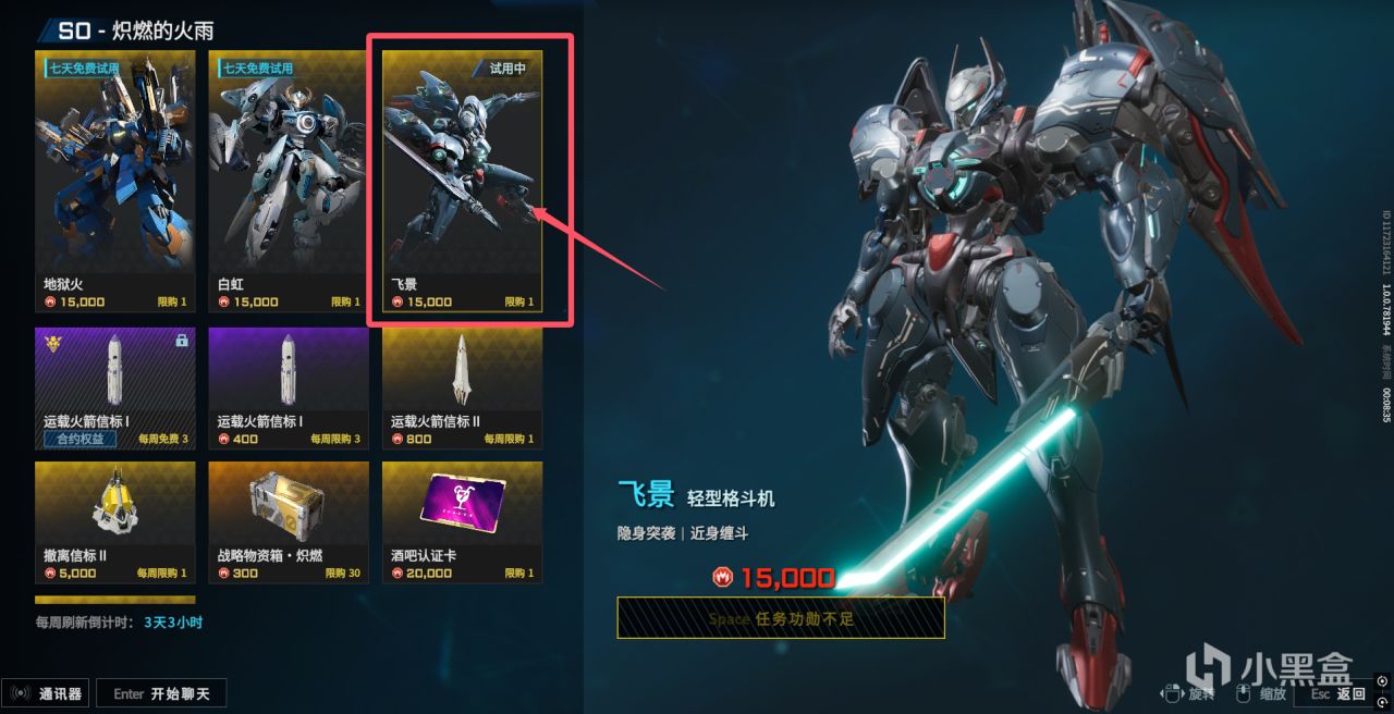 在公測的3個新機甲中,我唯一體驗了飛景。因爲它是唯一一款輕型的格鬥機,超高的機動性和隱身,以及高額的傷害,讓它成爲了切後排的利甲。
