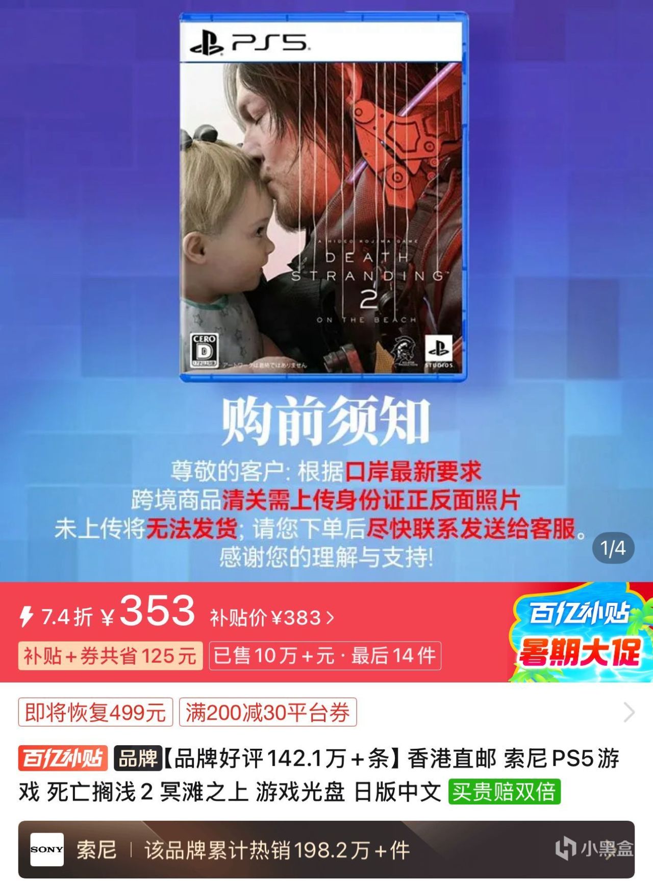 4.PS5《死亡擱淺2》日版中文353元包郵,用了一張免費積分兌換的200-30的券纔是這個價,對日文版遊戲封面不感冒,想要第一時間入手PS5實體版的遊戲玩家可以入,港版首發版目前價格還是有點高,等什麼時候降到合適入手價格我再寫推薦,想必等不及的朋友已經第一時間買了數字版了。