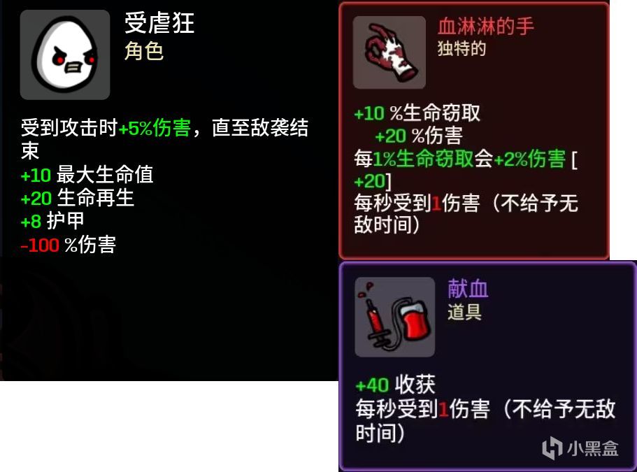 拿到獻血或者血手的話,就可以把閃避直接拉滿60,配合那幾個回血道具基本就死不掉了,可以多堆點傷害和暴擊。