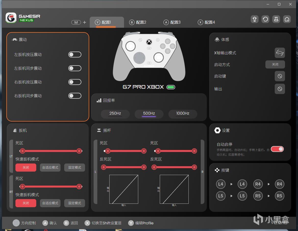 除了硬件方面,這款蓋世小雞G7pro也支持軟件進行自定義調節,你可以在Game Sir Nexus中進行調節手柄的回報率、搖桿死區、扳機鎖、按鍵映射、震動、陀螺儀等等功能,可玩性非常高。