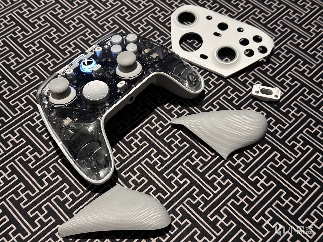 有趣的是這次的G7pro頭頂尖尖的,在充電口的位置增加了一個可拆卸的線材穩定槽,除此以外面殼也做了可拆卸的設計,不但中間的面殼可以更換,握把處也可以進行拆卸,拆開之後可以看到全透明的電路板以及馬達,可以看到手柄的整體做工用心程度,並且支持G7系列的面殼替換以及後續推出的全新面殼,期待。
