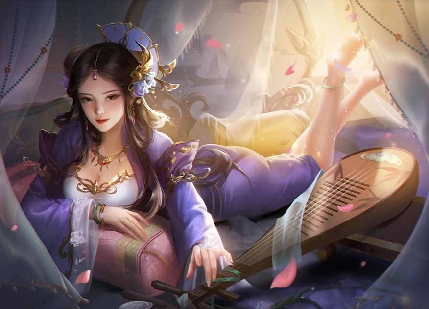 莫瓊樹,是魏文帝曹丕宮人。莫瓊樹會梳理一種與衆不同的“蟬鬢”髮型,即將面頰兩旁近耳頭的頭髮梳成薄而翹起的形狀。“望之縹緲如蟬翼”,如絲如緞,若天女下凡,令人遐想,宮中的其他女性爭相仿效她的髮型。