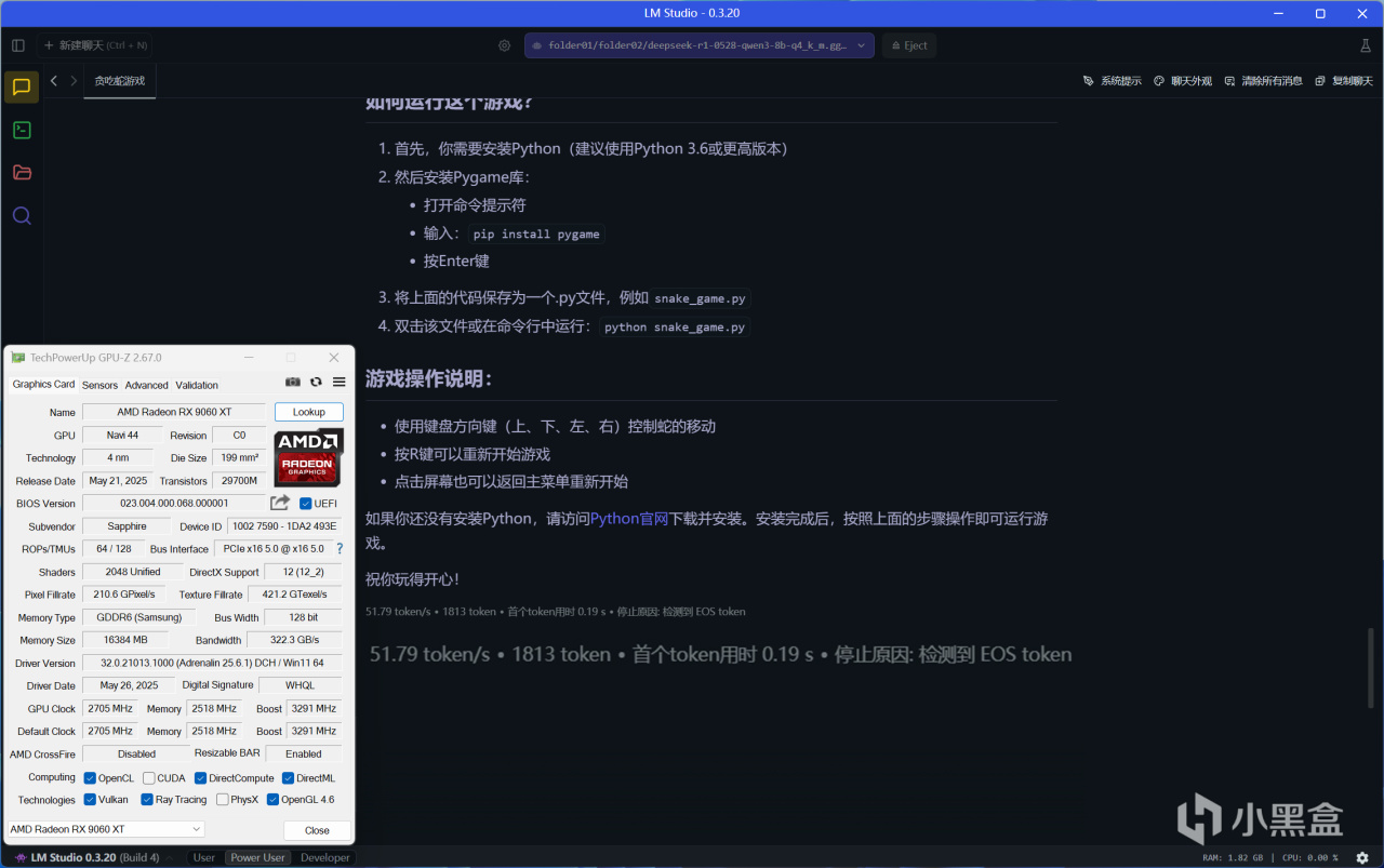 RX 9060 XT 16GB使用Vulkan模式運行DeepSeek R1 0528 Qwen3 8B大模型(GPU卸載MAX),推理速度達到51.79 token/s