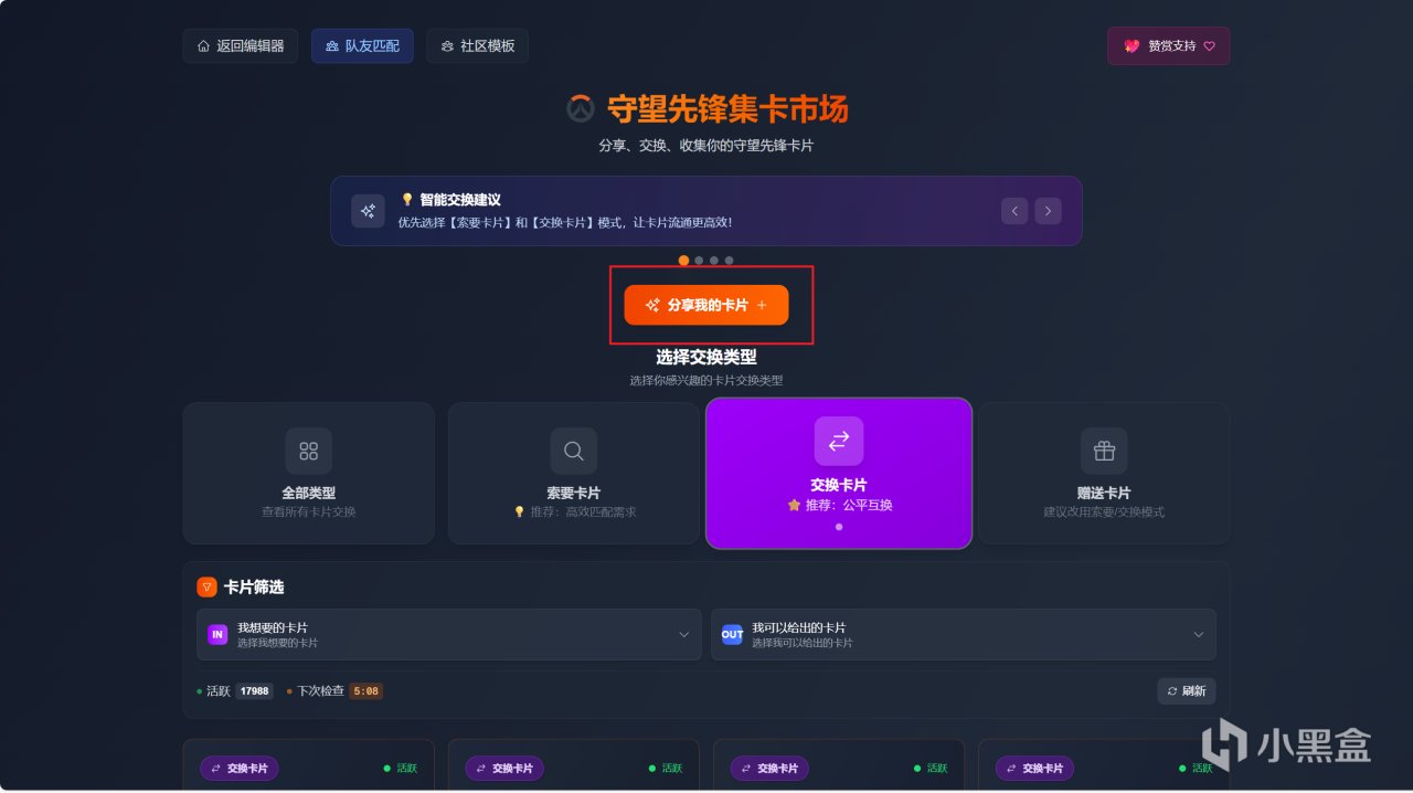 1.進入守望先鋒集卡活動,選擇多餘的卡片點擊交換