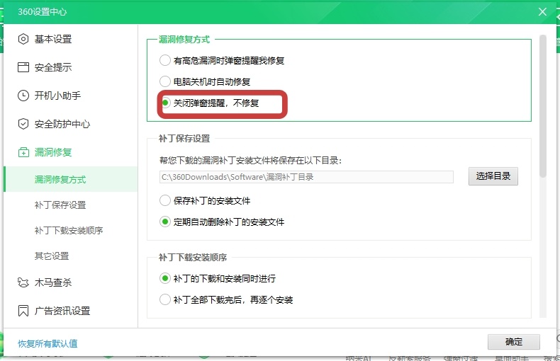 關閉彈窗提醒,系統本身就會更新安全補丁