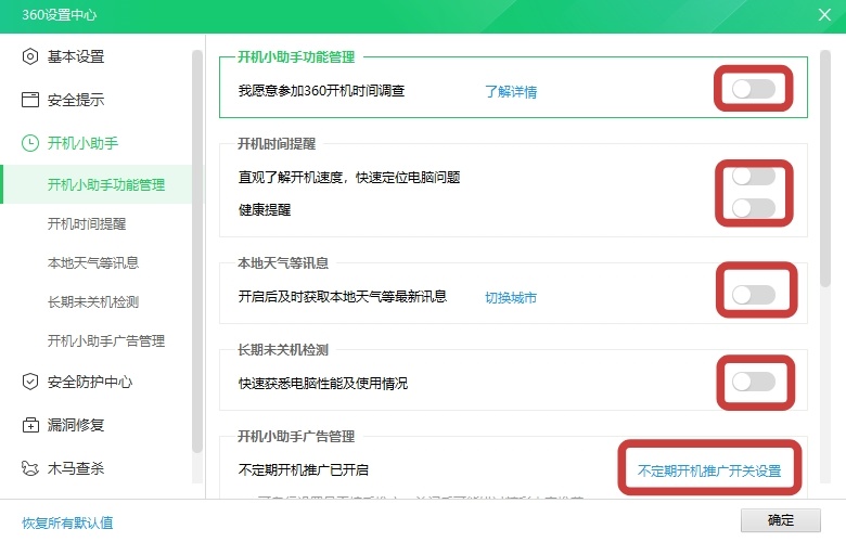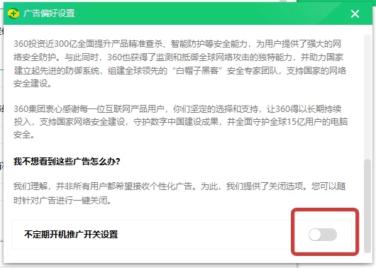 裏面的選項建議全部關閉,最下面的不定期開機推廣記得要進去關閉一下