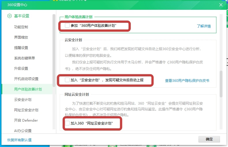用戶體驗改善計劃,雲安全計劃,網址雲安全計劃全部關閉