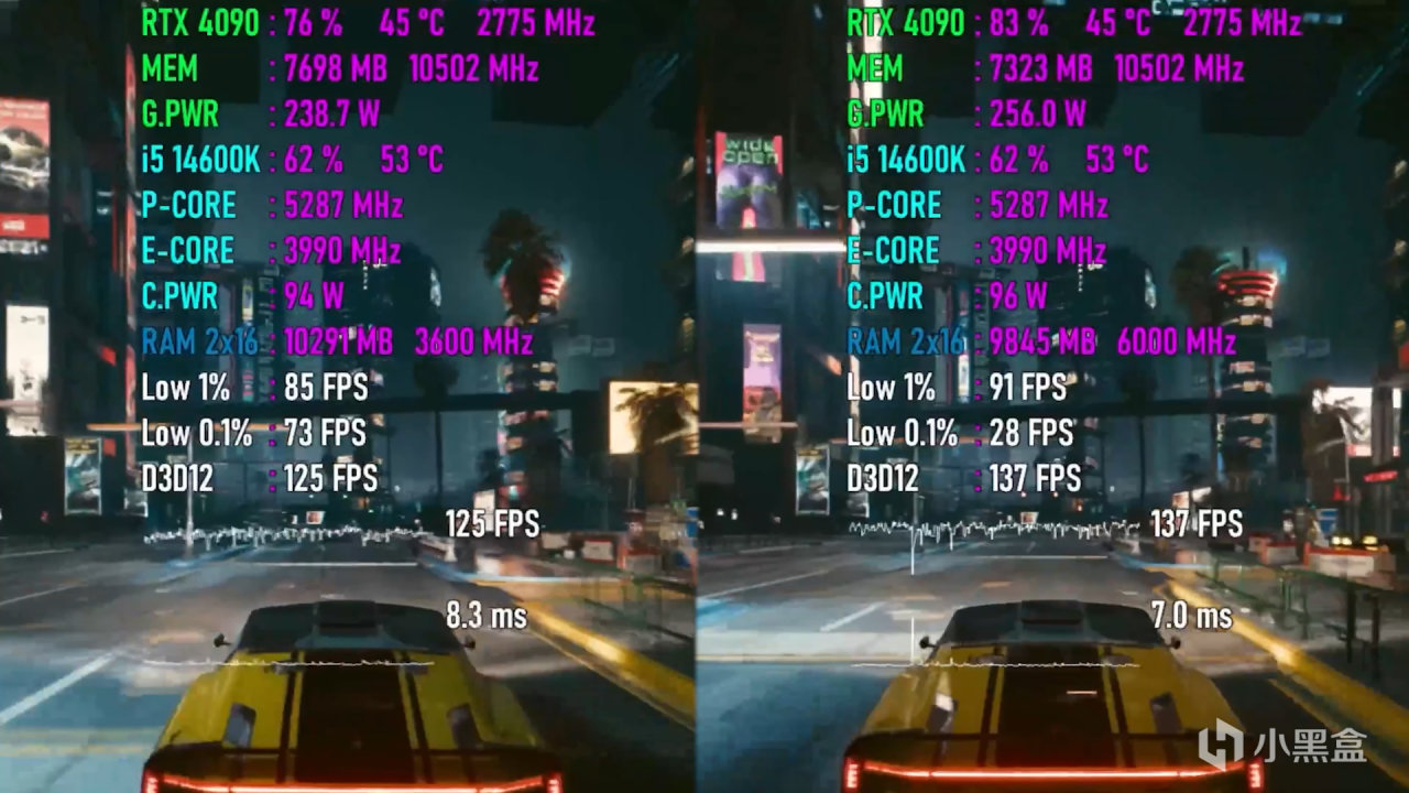 而在顯卡質檢員賽博朋克2077的1080P超高畫質下。