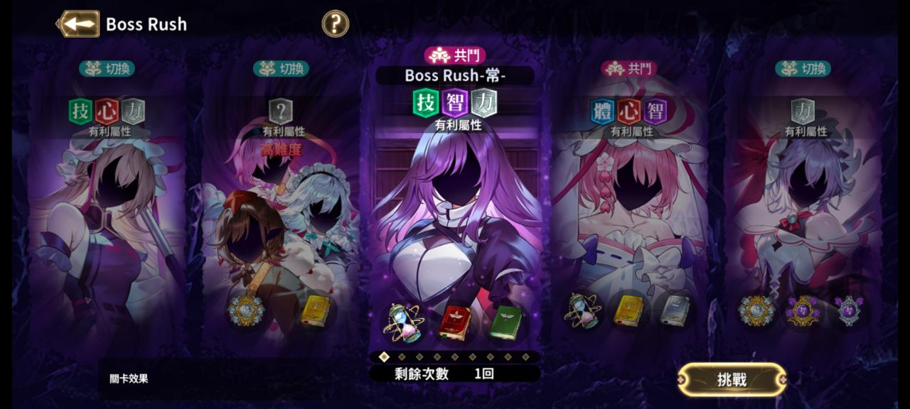 其次,每個角色強化至等級上限後,需要通過“覺醒”使角色進階到更強的階段。覺醒道具的主要獲取方式是在【BOSS RUSH】模式中,連續對抗多種強力BOSS。同時,最多可邀請兩位好友一同進行“協力合作”挑戰。