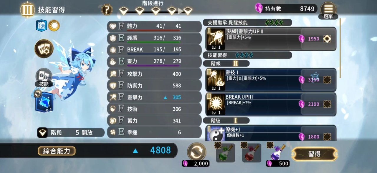 若【想起卡】的BD成型,每局打出SSS評分都輕而易舉。此外,【想起卡】還設有獨立的養成頁面,玩家需消耗相應的“界石”逐一解鎖技能/強化戰力及整體屬性。
