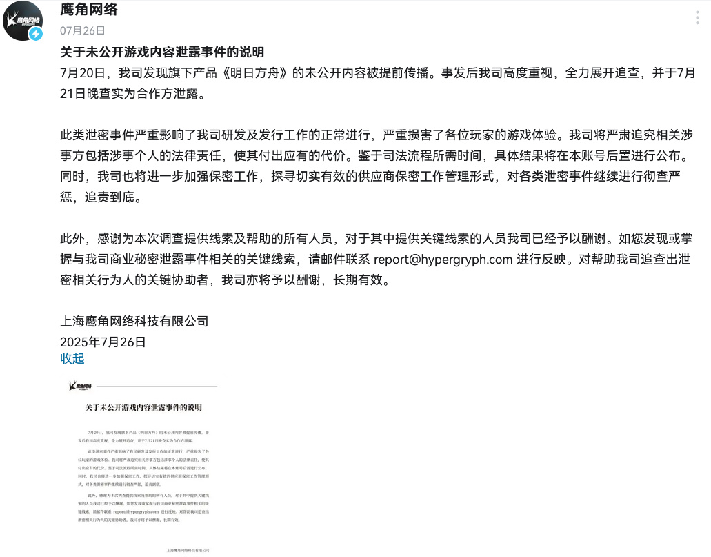 那麼話又說回來了,雖然不知道合作方泄露是鷹角草臺給人鑽了空子還是對方就是故意搞鷹角倒黴鷹角不可抗力,但出了這麼大問題鷹角總該長記性做好防護了吧。