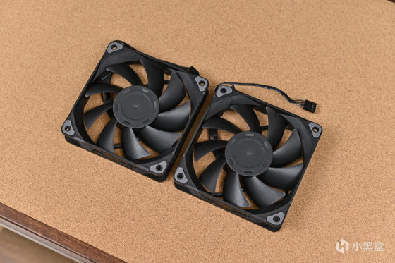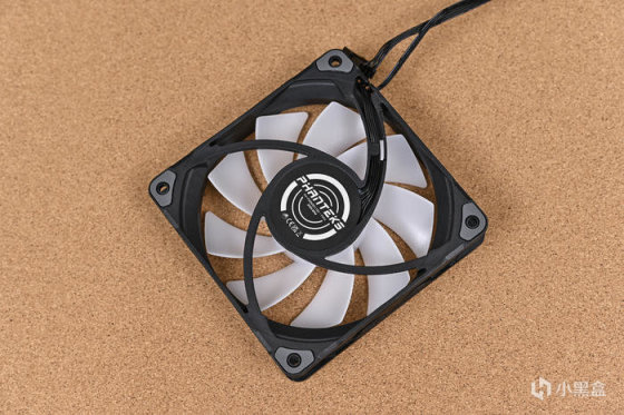 散熱器附帶兩把追風者 M25 120 ARGB 黑色風扇。風扇全黑色外觀,四角均有減震腳貼。參數方面最高轉速 2000 RPM,風壓 2.67mm H2O,最大風量 84.26 CFM。另外4Pin風扇線及 5V 3Pin ARGB 接口均可子母連接,方便多風扇串聯。值得一提的是這款風扇具有五年質保。