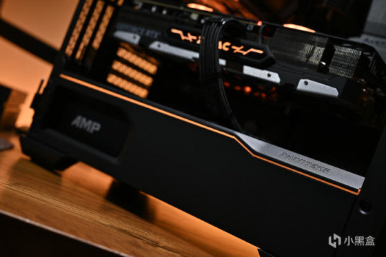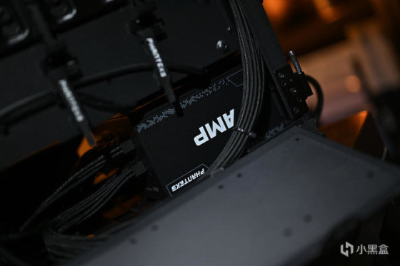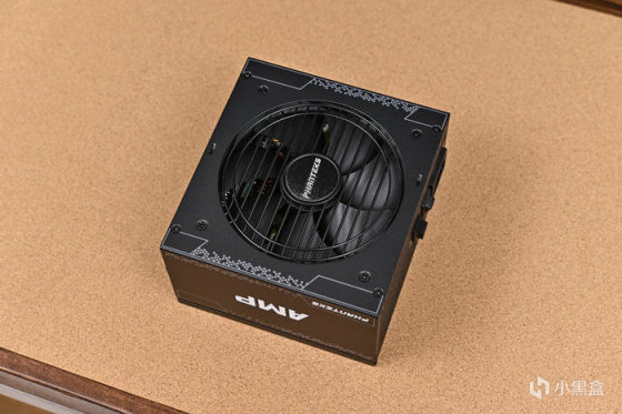 電源側面是 AMP 標誌,右上角有追風者的標識,下方是特殊的幾何波浪線點綴。