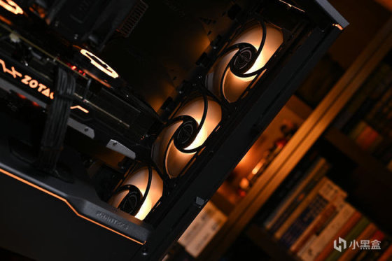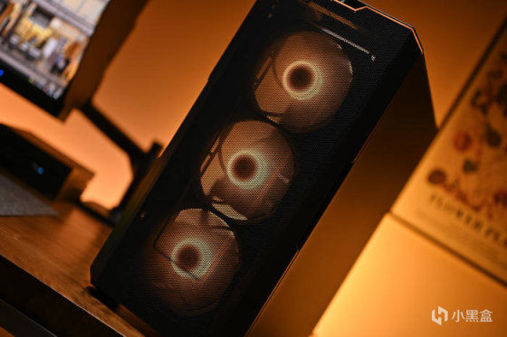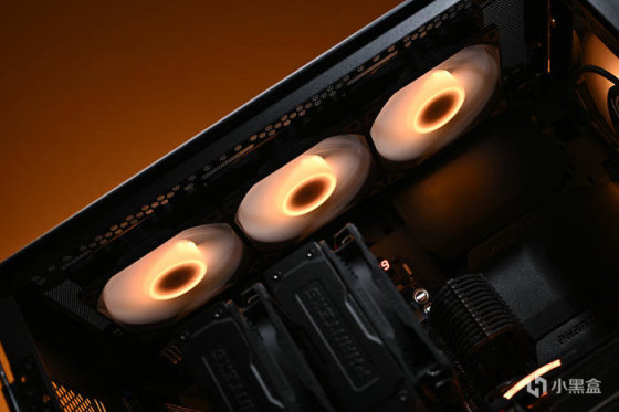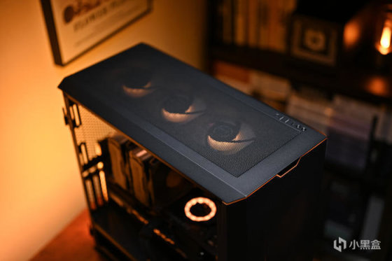 機箱頂部同前面板整面 1mm Mesh通風網孔設計,上部安裝的 3 顆追風者 M25 120 燈效。