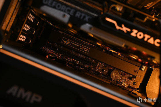 ROG MAXIMUS Z790 HERO的包裝盒內還附贈了一張 ROG HYPER M.2 CARD 拓展卡,單槽位設計,通體由兩塊厚實的鋁合金加工而成,可以提供兩個額外的 M.2 硬盤位,其中 1 個支持 PCIe 5.0。金屬裝甲非常厚實,預貼導熱貼,爲固態硬盤穩定運行提供低溫保障。