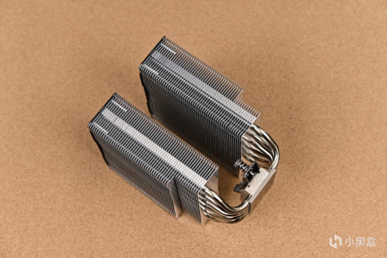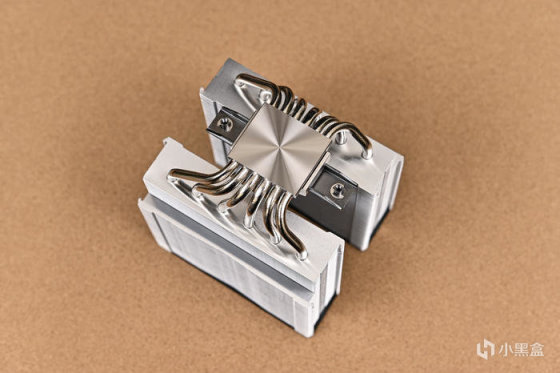 底部爲高光鏡面 CD 紋微凸銅底增加 CPU 散熱接觸面積,同時銅底座和熱管精準貼合焊接,散熱更佳。散熱器採用 6 根抗重力複合型熱管,同時表面鍍鎳,增加抗氧化能力。