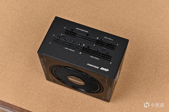 這款 Phanteks AMP1000 是追風者與海韻共同研發的產品,海韻代工,通體黑色外觀,具體尺寸爲 140×150×86mm(LxWxH),短小的身材可以更好的兼容到機箱,經過 80PLUS 金牌電源認證,電源頂部是一顆12cm流體動力軸承風扇,風扇罩上是追風者的Logo。