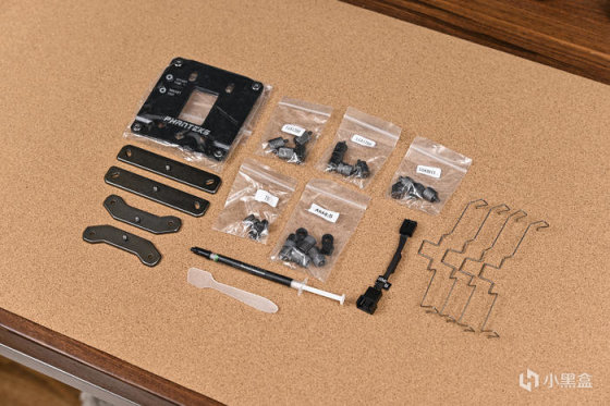 附件方面非常豐富,附贈了各型號扣具,支持intel 115x、1200、20xx、1700,AMD方面支持AM4以及最新的 AM5,附贈了一管高性能碳納米導熱硅脂,通過附贈的刮刀更易塗抹。同時附贈了降噪風扇線,將雙風扇控制在 1500 轉以內的舒適轉速下。