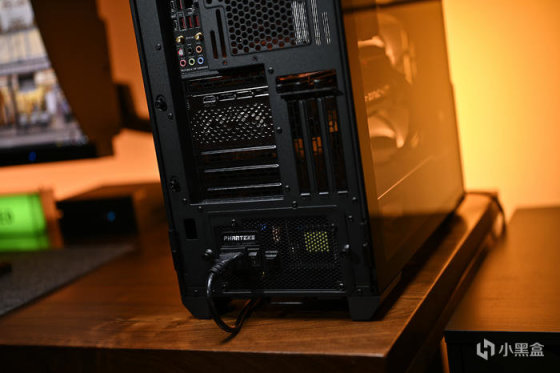 電源尾部是一整面散熱出風口,左側是電源插孔、電源開關以及一個控制風扇轉動的 HYBRID 技術物理開關實現 70% 以下低負載停轉,從而得到零噪音的使用體驗。