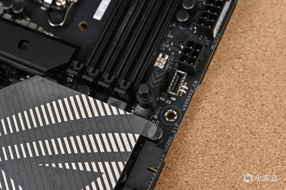 ROG MAXIMUS Z790 HERO 提供了四個最高支持 128GB DDR5 7800Mhz 的內存插槽,右上角標配 Debug 偵錯燈、獨立開關機和重啓鍵方便裸板超頻使用。
