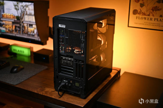機箱尾部左側爲主板 I/O 接口,右側是 12/14cm 風扇安裝位。