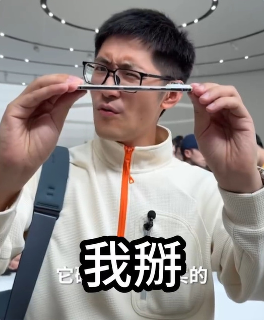 在視頻中,Tim不僅全面解析了Air系列的極致輕薄設計、標準版的性價比大招,甚至還在現場直接上手試着掰了一下iPhone Air,測試新機鈦合金的結構強度。