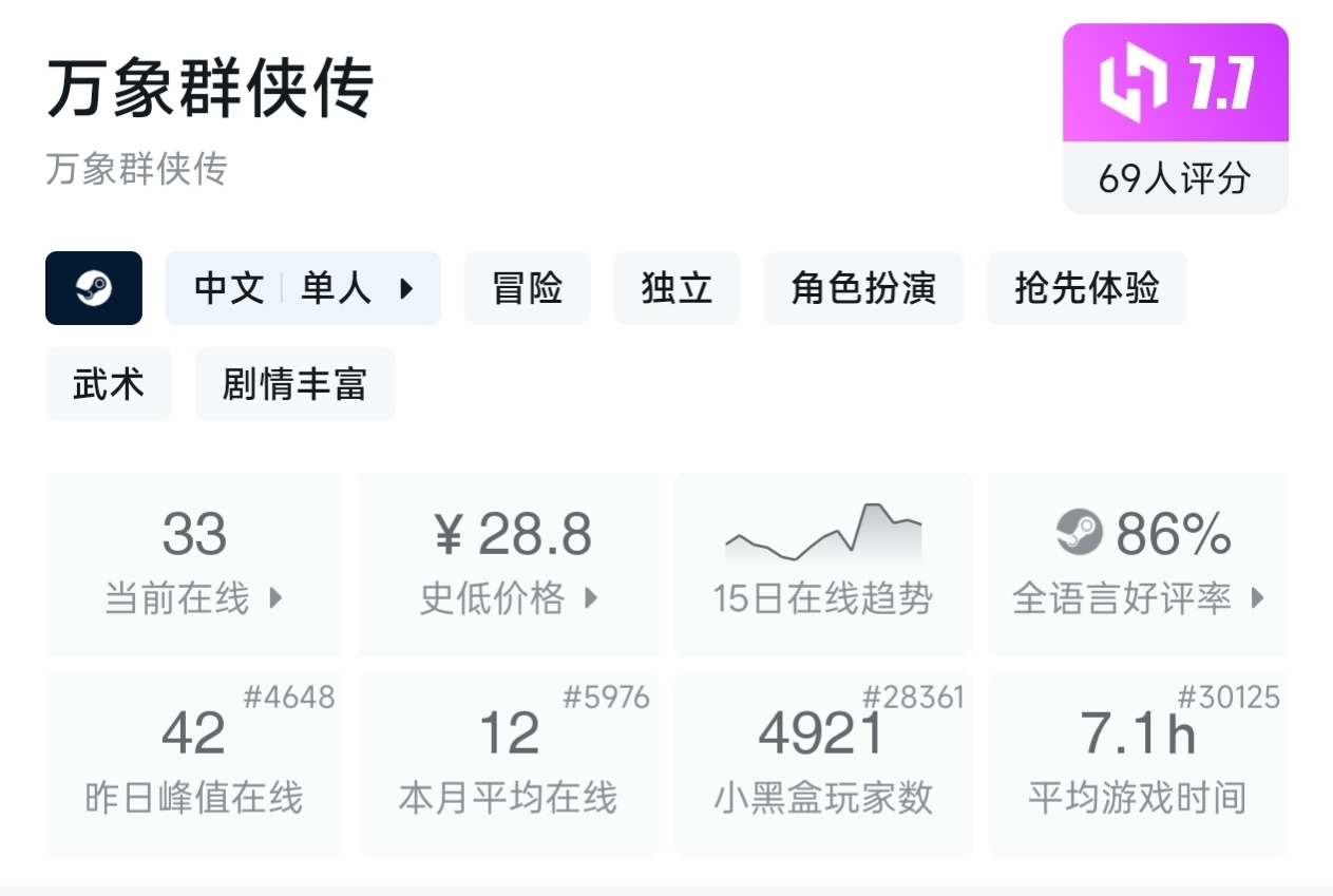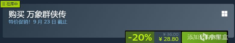 Steam開啓八折售價28.8元,折扣持續於9月23日。