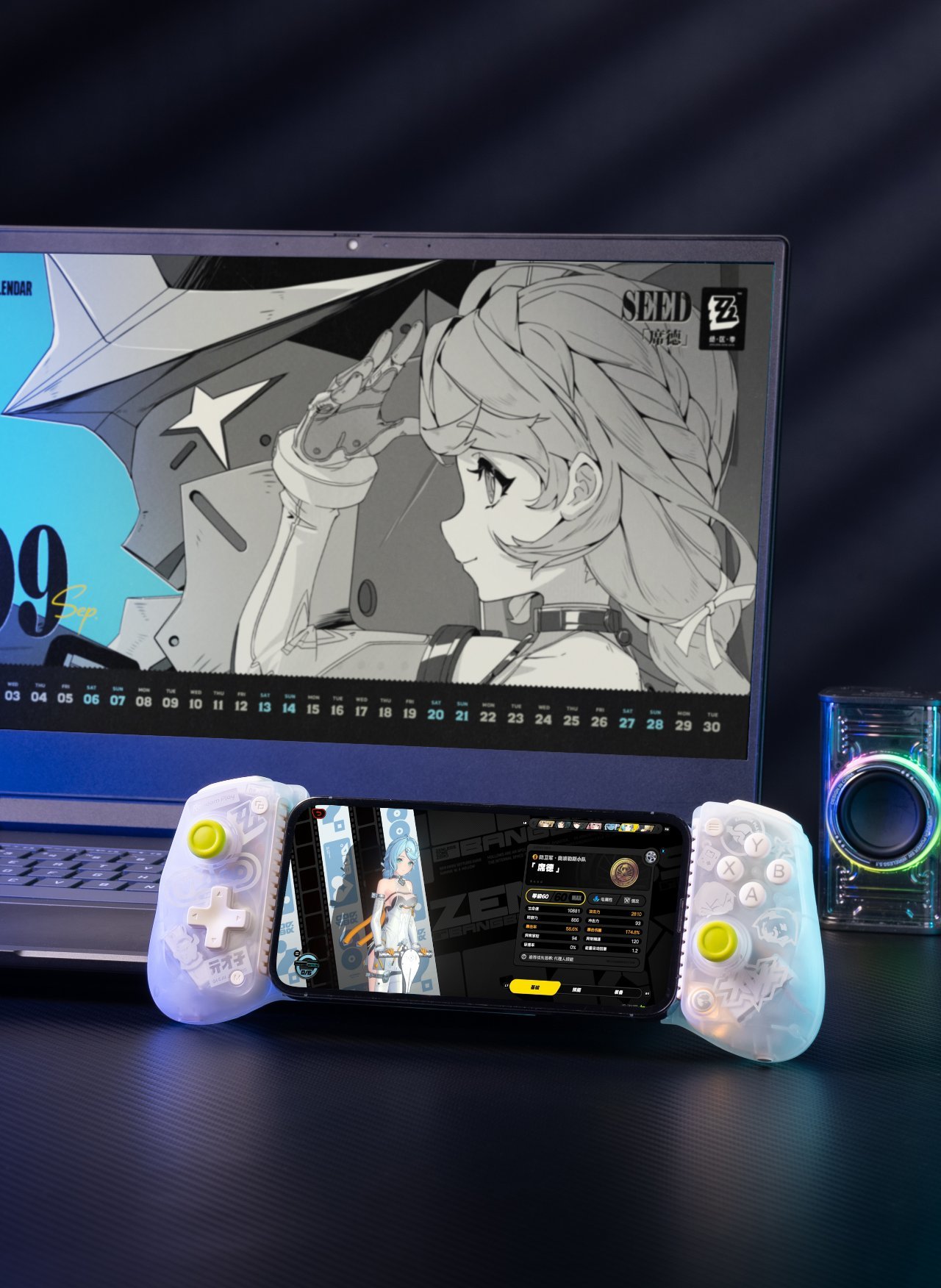 獨特的ZZZ半透明設計,絕區零專屬字符ABXY鍵,黑白兩款三段式面殼,隨心替換
