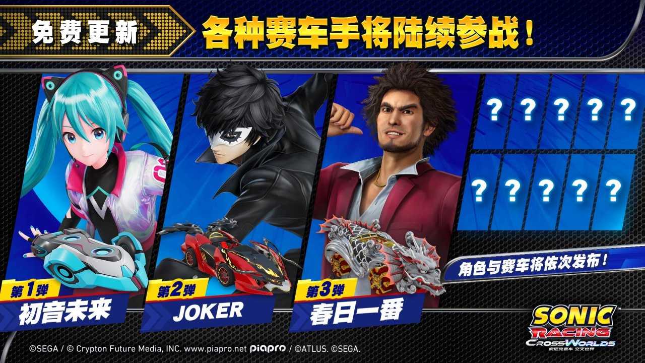 開發團隊強調,新增角色不僅限於索尼克系列,還將囊括世嘉旗下多款IP的聯動角色。目前已確認的追加角色包括初音未來、《女神異聞錄5》Joker和《如龍》春日一番,這些角色將通過月度更新陸續登場而非首發即含。團隊還透露正在籌備線上活動與更多未公開更新內容,確保玩家在發售後長期保持新鮮感。