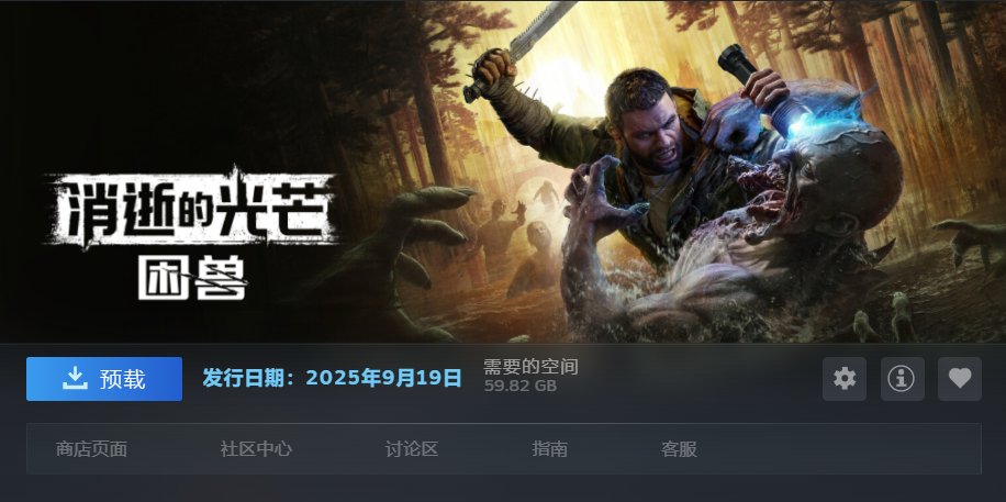 《消逝的光芒:困獸》現已開放預載功能,Steam版需要空間59.82GB,下載的壓縮文件大小爲45.8GB,遊戲將於北京時間9月19日凌晨0點正式發售。