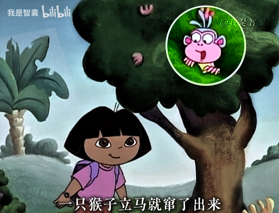 至於前頭說的“朵拉智鬥假猴子”,本身也是經過後期剪輯,刪減掉特定內容後的整活視頻。
