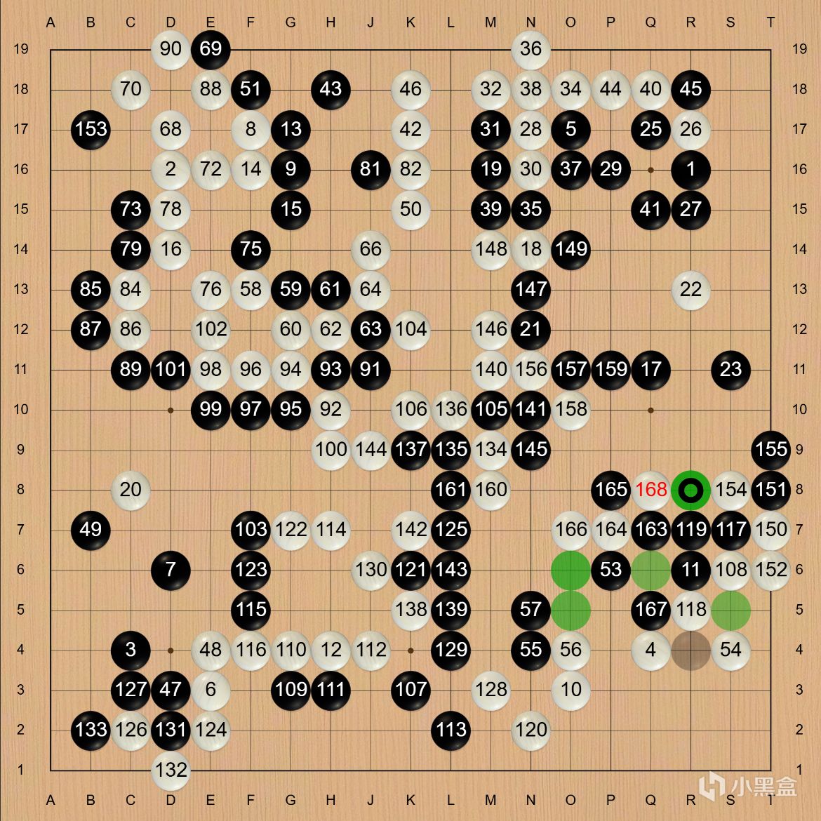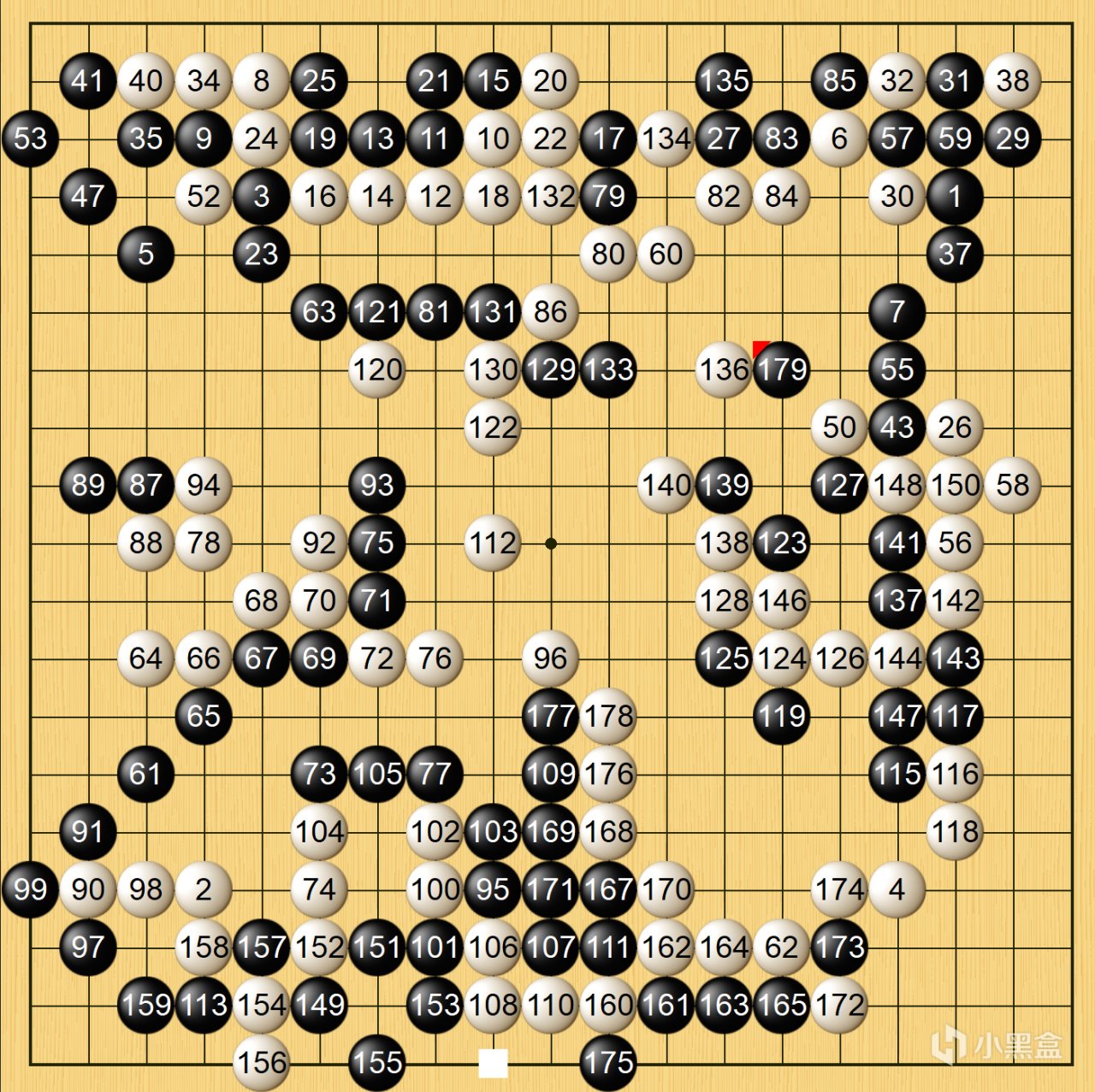 屠曉宇弈出強手,將黑棋的中空破除,最終於第168手中盤獲勝。