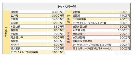 日本棋戰獎金