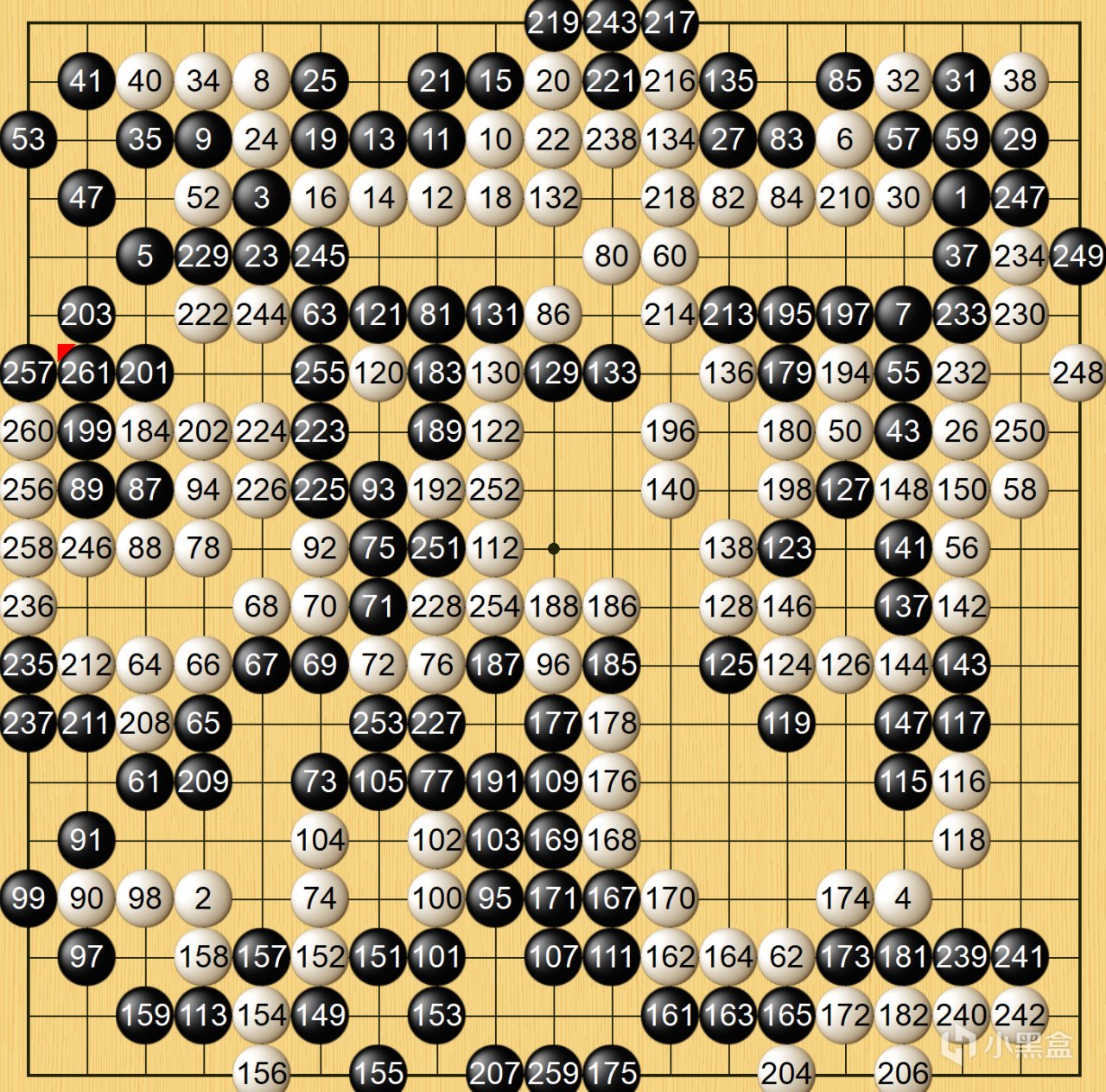最後是半目勝負,柯潔223下出關鍵一選,到237手柯潔率先進入讀秒,