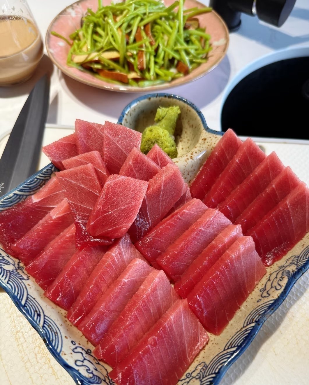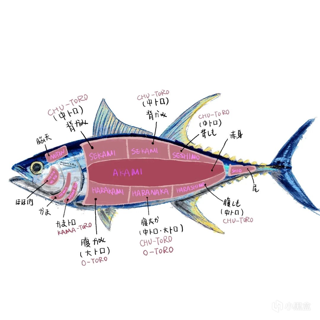 金槍魚體型比較大,一般金槍魚都可以分爲紅肉和脂肉等不同部位。