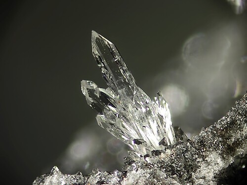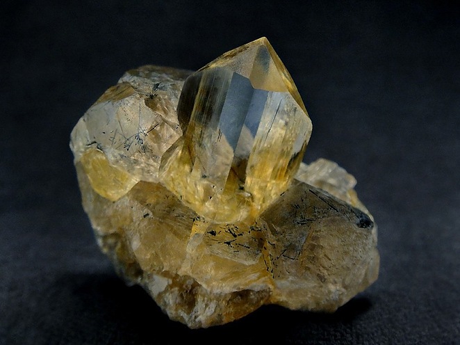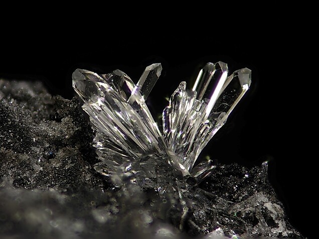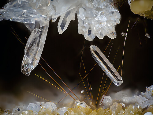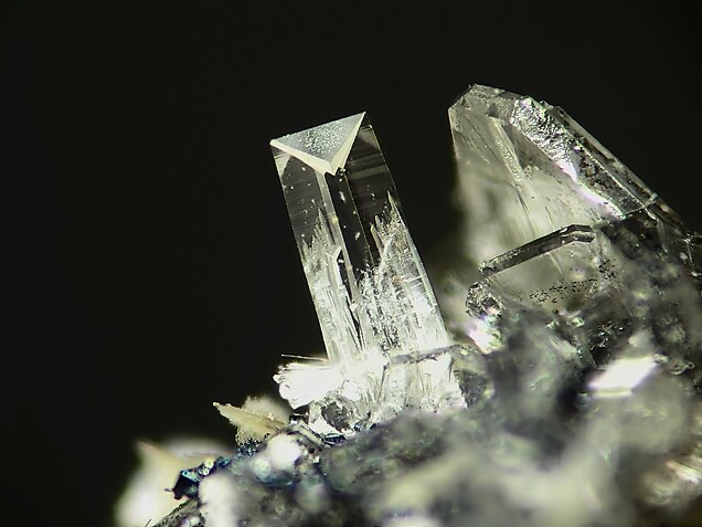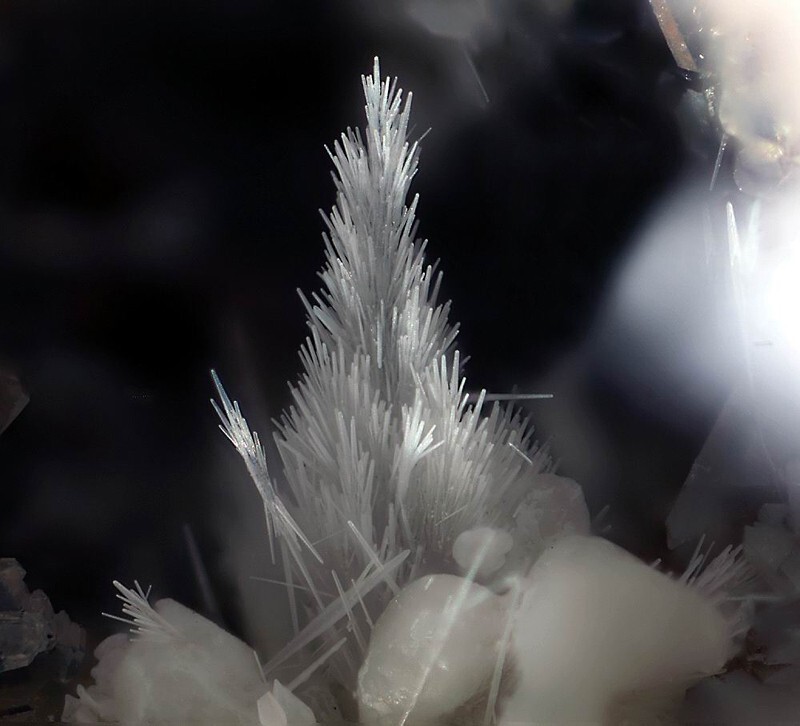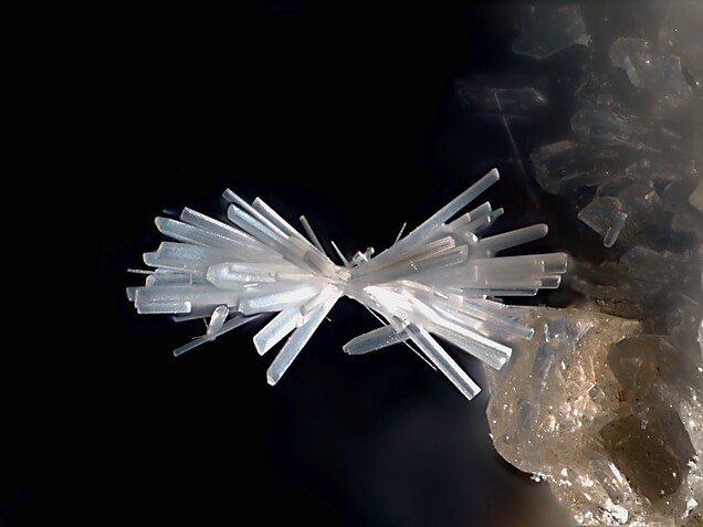 一開始我驚歎於它的造型和稀少的針狀結晶。後來好奇查了一下,這類晶體常見於偉晶岩後期熱液階段,在富氟環境中沿C軸優勢生長。
