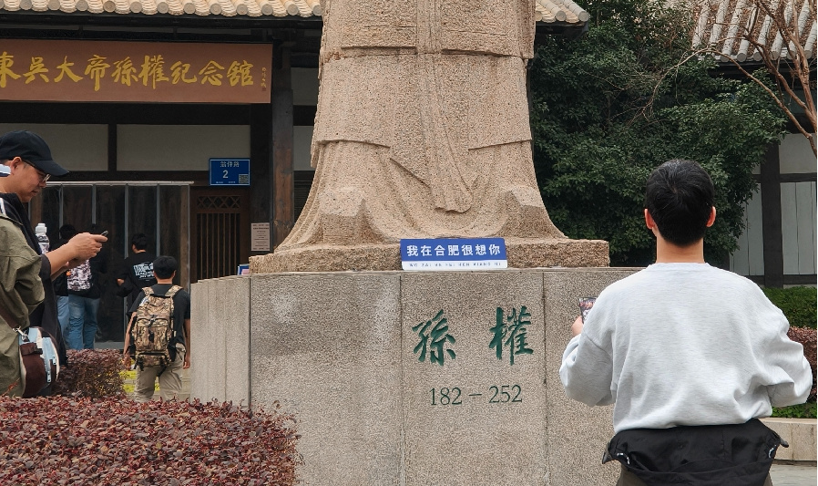 所以除了張遼卡之外,你還能在墓前看到“我在合肥很想你”的網紅打卡牌。